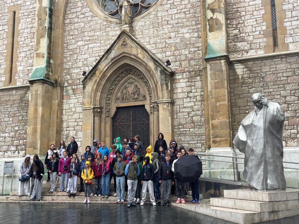 5 października 2025 roku rozpoczęła się wielka edukacyjna wyprawa zagraniczna 45 uczniów z klas IV-VIII szlakiem skarbów wpisanych na Listę Światowego Dziedzictwa UNESCO. Pierwszym etapem wycieczki była Bośnia i Hercegowina, więc rozpoczął się on od zwiedzania Sarajewa. Chociaż miasto przywitało młodzież lekką mżawką, to wraz z przewodnikiem dzielni uczniowie zwiedzili ciekawe zakątki bośniackiej stolicy. Rozpoczęli od Placu Baščaršija, który otwiera przed zwiedzającymi uroki Starego Miasta z klimatycznymi uliczkami, ze straganami pełnymi ręcznie robionych tygielków i innych naczyń do parzenia kawy w stylu bałkańskim. Na Placu Baščaršija jest mnóstwo gołębi, które siedzą na dachach i fruwają nad placem, a nieopodal Placu Baščaršija uczniowie mogli zobaczyć meczet, a potem pospacerować Złotą Uliczką. Oglądali również Katedrę Serca Jezusowego, przed którą stoi pomnik Jana Pawła II. Podczas spaceru z przewodnikiem uczniowie dotarli pod ratusz przechodząc przez Most Łaciński nad rzeką Milijacka. Tuż przy moście, na rogu ulic znajduje się Muzeum Sarajewa, a przy nim replika samochodu, którym poruszał się arcyksiążę Ferdynand. To właśnie tam uczniowie poznali historię miejsca, w którym dokonano zamachu na arcyksięcia Ferdynanda i jego żonę w 1914 roku. Sarajewo otaczają piękne wzgórza i pagórki, które podczas zwiedzania osnuła mgła. Uczniowie dowiedzieli się, że ze względu na położenie bośniackiej stolicy w 1984 odbyły się tutaj Zimowe Igrzyska Olimpijskie. Z okien autobusu podziwiali imponujące górskie panoramy Alp Dynarskich i wijącą się wśród skał rzekę Neretwę. Dzień zakończyli wieczornym spacerem nad morze i plażę, by podziwiać niebo rozświetlone przez księżyc i pięknie oświetlony Trogir widoczny w oddali. Kolejnego dnia udali się nad Wodospady Kravica na rzece Trebižat. Spadająca do powstałego jeziora kaskadami woda wśród zieleni lasów robiła ogromne wrażenie na uczniach, podziwiających ją z drewnianych podestów, plaży porośniętej drzewami oliwnymi i skalnej groty. Szukając śladów UNESCO w Bośni i Hercegowinie uczniowie dotarli również do Mostaru. Miasto zachwyciło wszystkich. Pani przewodnik już na początku zwiedzania uświadomiła uczniom, iż Mostar już od dawna był mieszanką kultur, tradycji i religii. Zwiedzanie rozpoczęli od Kościoła i Klasztoru Franciszkanów w Mostarze, przeszli na drugą stronę rzeki Neretwy przez Stary Most wpisany na Listę Światowego Dziedzictwa UNESCO i dotarli do części bośniackiej miasta, gdzie królowały meczety i charakterystyczna bośniacka zabudowa. To tam właśnie oglądali perłę osmańskiego Mostaru, czyli Dom Turecki, gdzie podczas zwiedzania uczniowie dowiedzieli się o kulturowych zasadach funkcjonowania rodzin muzułmańskich. Weszli również do meczetu, gdzie poznali zwyczaje panujące w religii muzułmańskiej. W związku z Rokiem Jubileuszowym przebiegającym pod hasłem „Pielgrzymi nadziei” na trasie odkrywania Bośni i Hercegowiny nie mogło zabraknąć Medjugorie, gdzie dzień rozpoczął się od Mszy Świętej w języku polskim w Kościele Świętego Jakuba. Po Mszy Świętej polski ksiądz uroczyście poświęcił, zakupione wcześniej przed uczniów dla swoich najbliższych, dewocjonalia. Następnie uczniowie dotarli pieszym szlakiem po kamienistych ścieżkach wzdłuż Drogi Krzyżowej na szczyt Góry Objawień, gdzie znajduje się figura Matki Bożej oraz drewniany krzyż. Na uczniów czekała jeszcze niespodzianka, czyli pyszna pizza w jednej z restauracji znajdujących się w centrum miejscowości. Na zakończenie pełnego wrażeń pierwszego etapu wycieczki, uczniowie wzięli udział w konkursie wiedzy zdobytej do tej pory podczas realizacji programu. Nietypową „salą lekcyjną”, w której odbył się konkurs stał się taras hotelowej restauracji z widokiem na morze i osnutą blaskiem księżyca śródziemnomorską roślinność. Uczniowie w parach odpowiedzieli na 28 pytań przygotowanych przez nauczycieli. I miejsce w konkursie wiedzy zdobył Mateusz Tokarz 8a oraz Szymon Kogut 8a. II miejsce ex aequo zdobyli: Michalina Zielonka 7b, Janina Kaczmarek 6a, Kacper Mikos 8a, Artur Zańko 6a, Franciszek Marczyk 7b oraz Mateusz Plata 7b. Wszyscy pozostali uczestnicy zostaną nagrodzeni pozytywnymi uwagami z zachowania. Wyjazd zagraniczny uczniów Szkoły Podstawowej nr 2 im. Juliusza Słowackiego w Starym Sączu był możliwy dzięki Rodzicom uczniów, którzy biorą udział w wycieczce, a także sponsorom, wśród których znaleźli się: Rada Rodziców przy Szkole Podstawowej nr 2 im. Juliusza Słowackiego w Starym Sączu, ksiądz proboszcz Marek Tabor z Parafii pw. św. Elżbiety Węgierskiej w Starym Sączu, Firma BATIM Transport Międzynarodowy i Spedycja ze Starego Sącza, Przedsiębiorstwo Produkcji Lodów Koral z Limanowej, Kim Kelly ze stanu Ohio w USA, Bank Spółdzielczy w Starym Sączu, Marek Jojczyk Usługi Remontowo- Budowlane, Marek Sztafa Schronisko PTTK na Przehybie, Wiesława Rzaska, Krystyna Jeziorek Wytwórnia Cukiernicza, Bartłomiej Luberda Firma Handlowo-Usługowa 'SAKO’ oraz nauczyciele Szkoły Podstawowej nr 2 w Starym Sączu.
