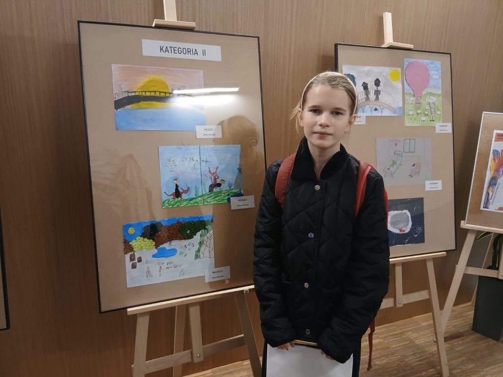 Komisja konkursowa, której przewodniczyła malarka Elżbieta Szot wyłoniła laureatów. Wśród nagrodzonych znaleźli się uczniowie naszej szkoły. W kategorii wiekowej dla klas IV-VI szkoły podstawowej wyróżniona została Aleksandra Król z klasy 6a a nagrodę za 3. miejsce otrzymała Klara Orłowska z klasy 5b. Dyplomy za udział w konkursie otrzymali również pozostali uczestnicy: Janina Kaczmarek i Piotr Zelek z klasy 6a.