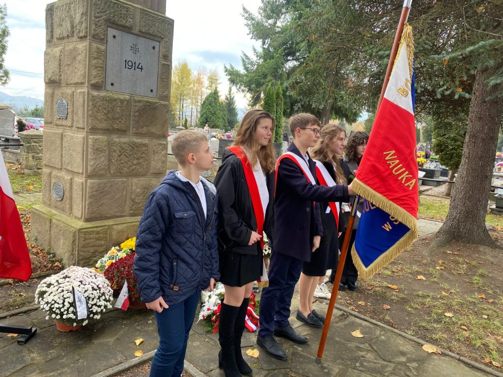 Podczas uroczystości naszą szkołę reprezentował Poczet Sztandarowy oraz delegacja uczniów na czele z Panią Dyrektor Wiolettą Nowak. Uczniowie złożyli pamiątkowe wiązanki i znicze pod pomnikami ofiar I i II wojny światowej oraz pod pomnikiem „Golgota Wschodu”, przy którym uczennice naszej szkoły pełniły wartę honorową.